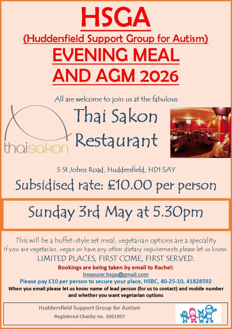 We’re hosting our annual AGM and meal at the Thai Sakon restaurant, on Sunday 3rd May 5.30pm, see attached. All members are welcome, numbers are limited so, booking is on a first come, first served basis. It will be £10 per person which is obviously subsidised so that cost is not a barrier to coming. Given this level of subsidy entrance is limited to HSGA members and partner / immediate family thank you. No booking will be taken without payment.